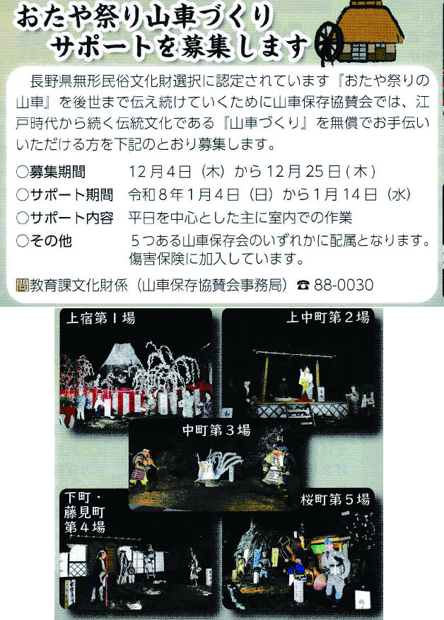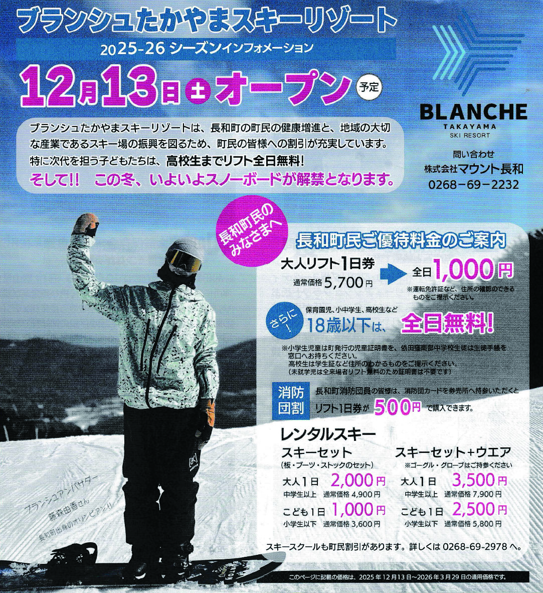 今期の除雪は長和町役場からの除雪作業です。 積雪10cm以上になると除雪車が出動します。今季は大雪の可能性が高いので冬用タイヤ・チェーンなど万全の体制でお越しください。